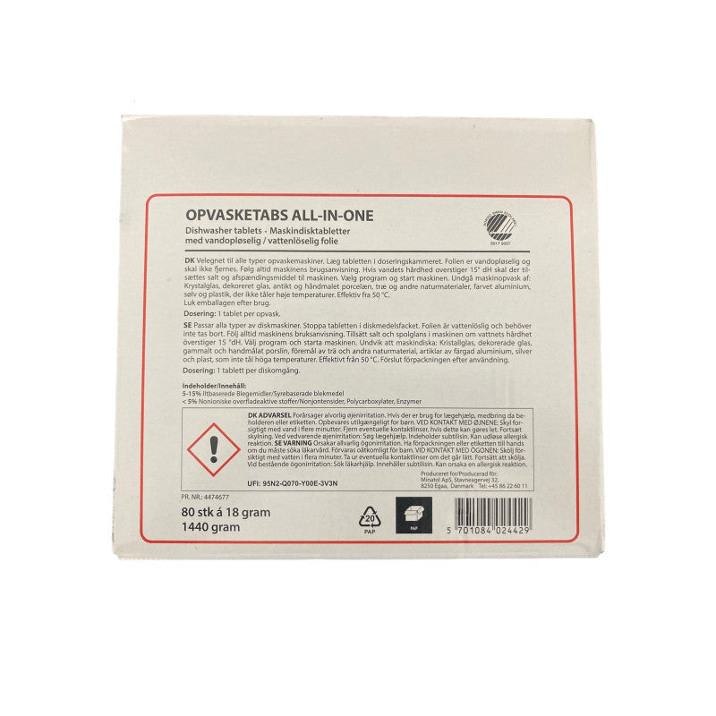 "Allt-inní-einu" uppþvottavélatöflur 80 stk, Svansvottaðar í vatnsleysanlegri filmu