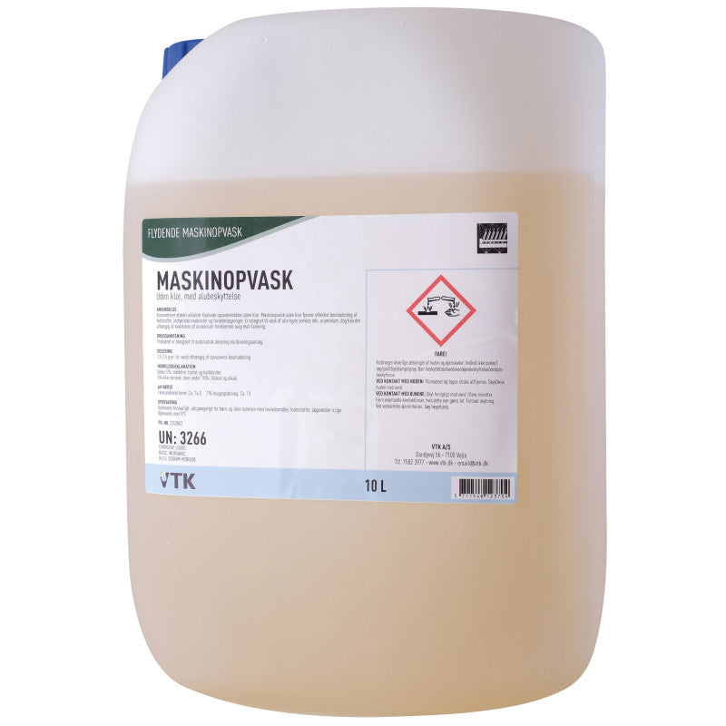VTK Uppþvottalögur fyrir vél – Án klórs – 10 lítrar – Fyrir sjálfvirka skömmtun – Má nota á áli